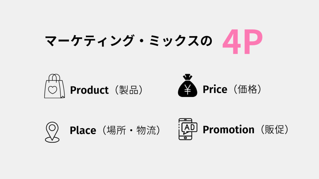 マーケティング・ミックスの4Pとは、Product(製品)、Price(価格)、Place(場所)、Promotion(プロモーション)の各要素から成り立っています。これらはマーケティング戦略を構築する上での基本的なフレームワークであり、顧客のニーズに合わせてこれらを適切にミックスするためのものです。