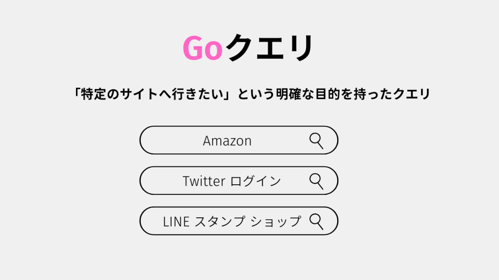 Goクエリは「特定のサイトへ行きたい」というユーザーのニーズを表すクエリです。例を挙げると: