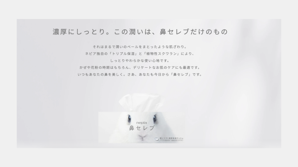 - ユーザー自身がニーズに気づけるように伝えること:発見した潜在ニーズを消費者に伝え、理解してもらうコミュニケーションが重要です。「鼻セレブ」の場合、柔らかい動物のパッケージデザインが肌に優しい製品であることを伝えるのに効果的でした。